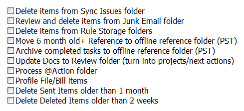 Of course, using your Outlook inbox as a clearinghouse makes the most sense if you use Outlook as your list tool. For example, I customize Outlook for managing my projects list, next action lists, and reference lists. If you use some other application to manage your lists, you should make that application your clearinghouse instead.